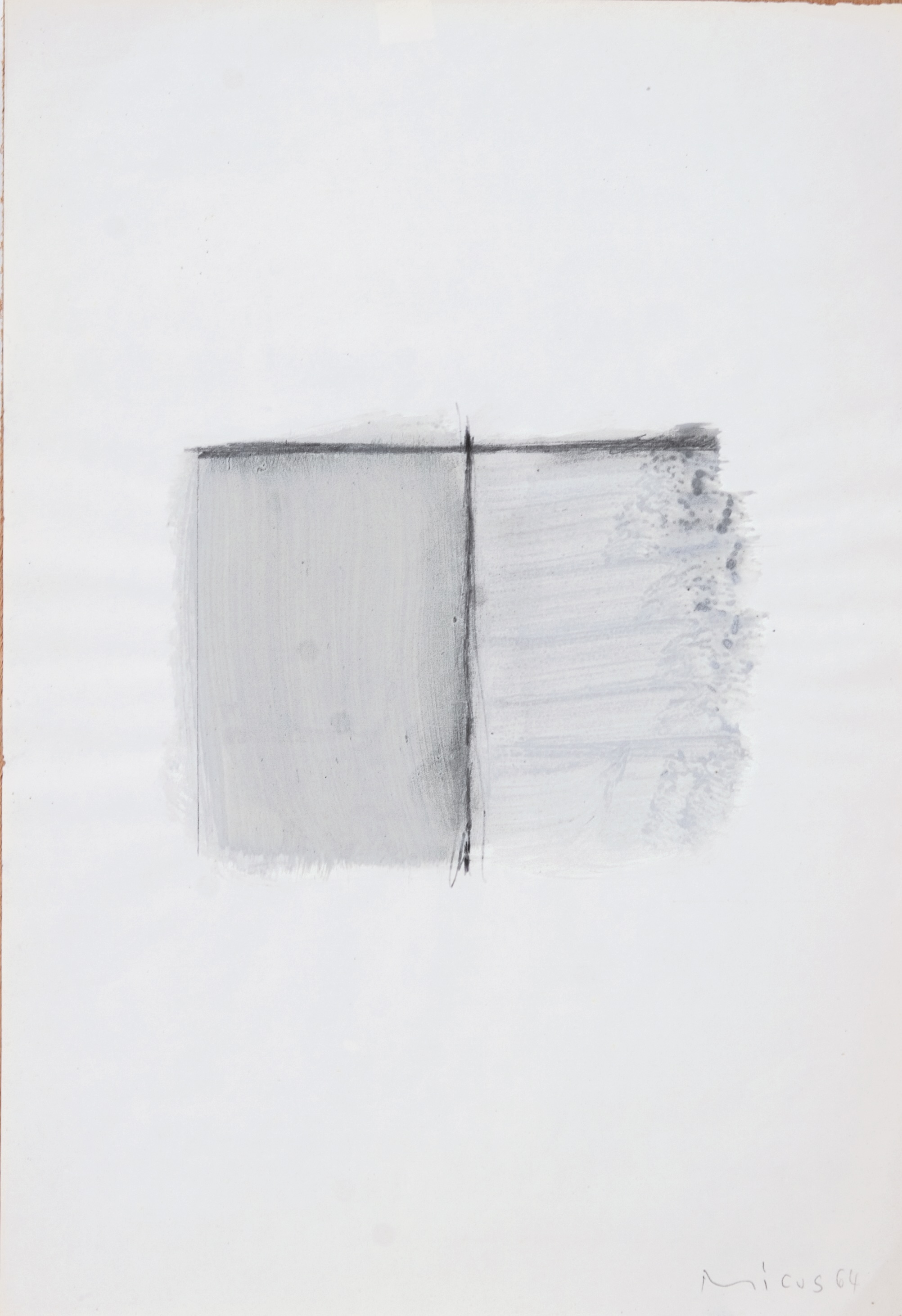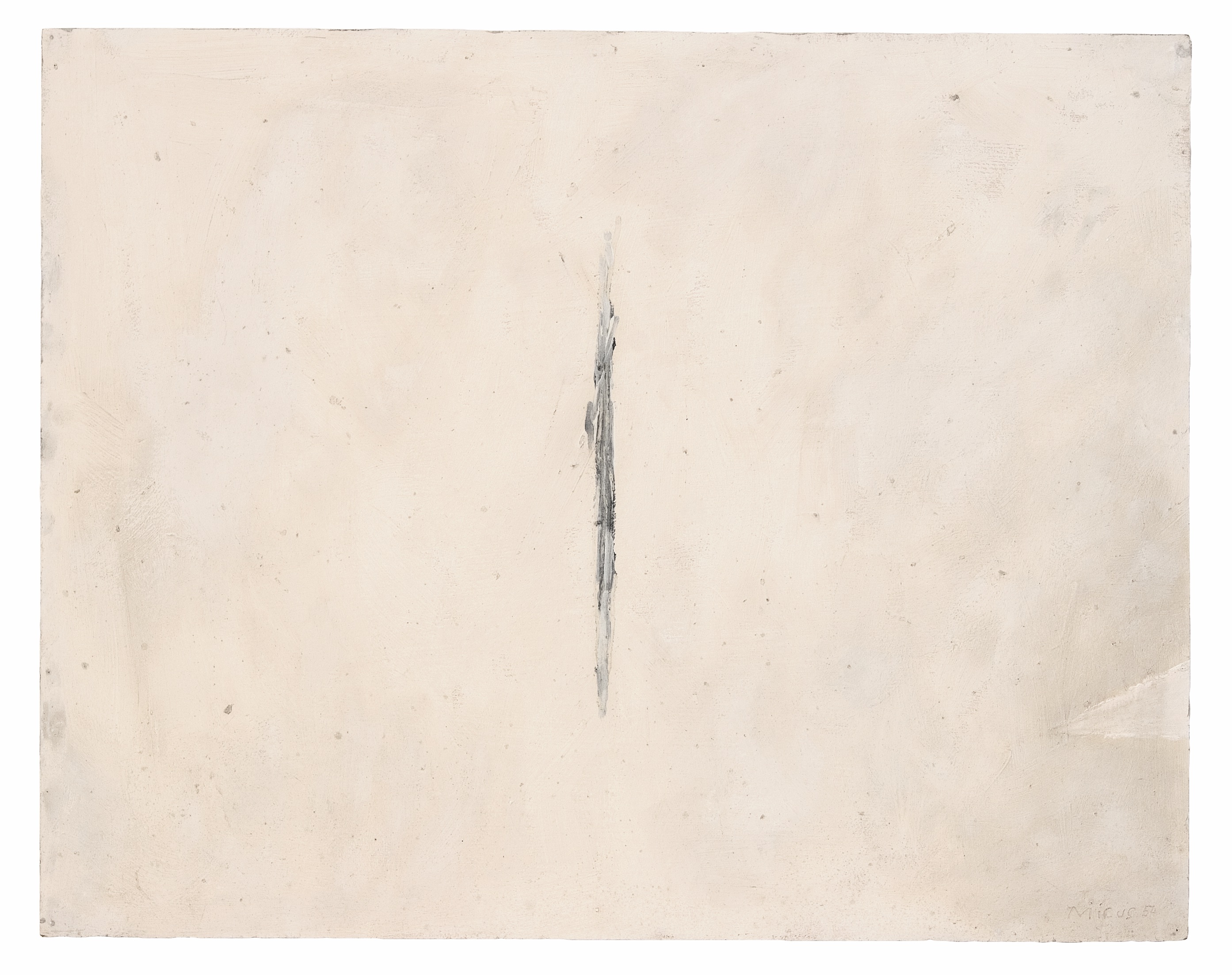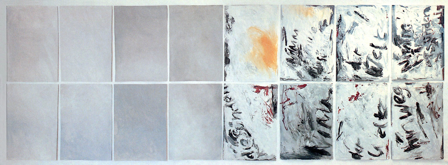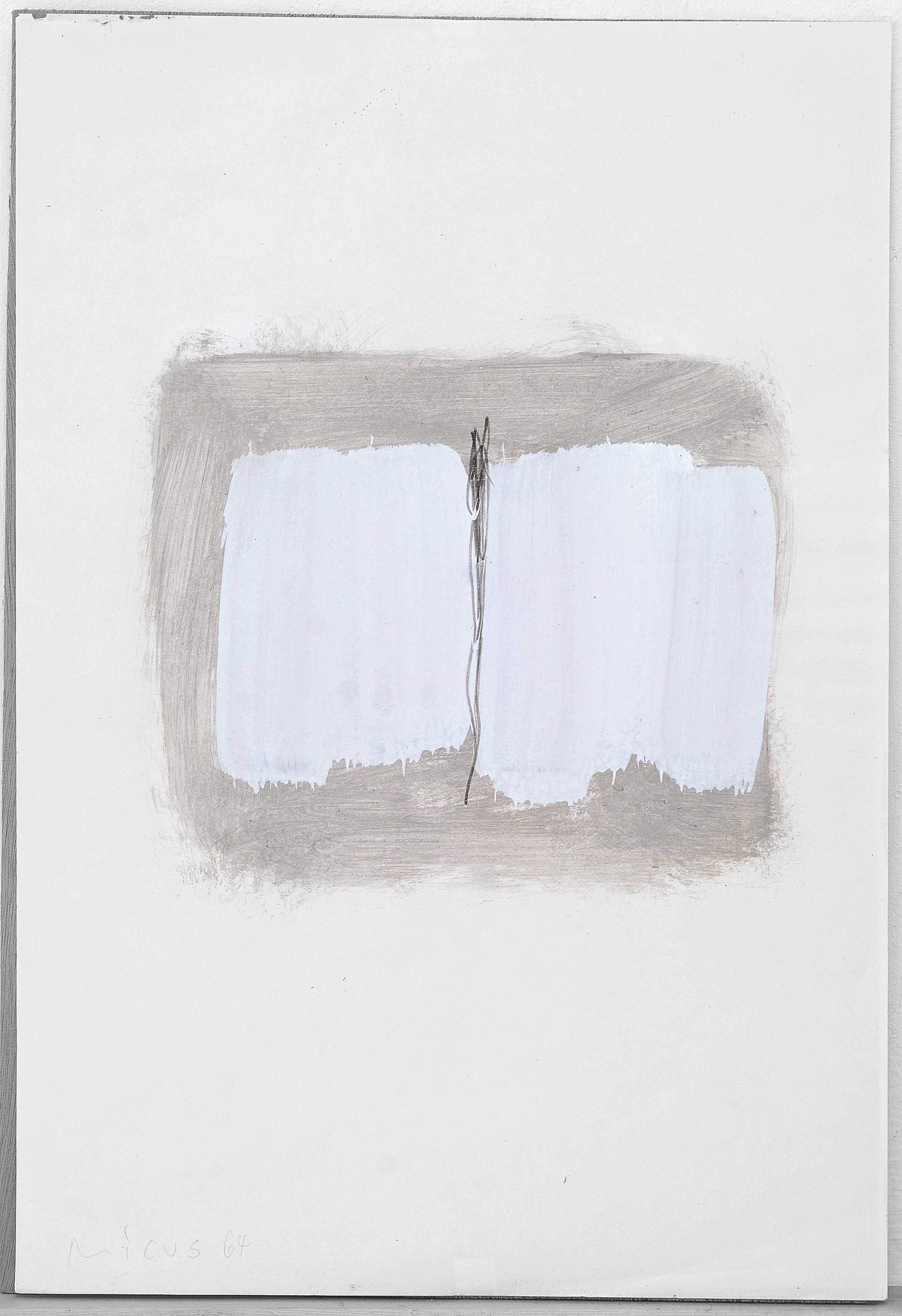 During his studies in the Akademie Stuttgart, 1949-1956, he went practiced different techniques and was influenced by his professor Willi Baumeister. It was there, where his first painting divided by one line was drawn.