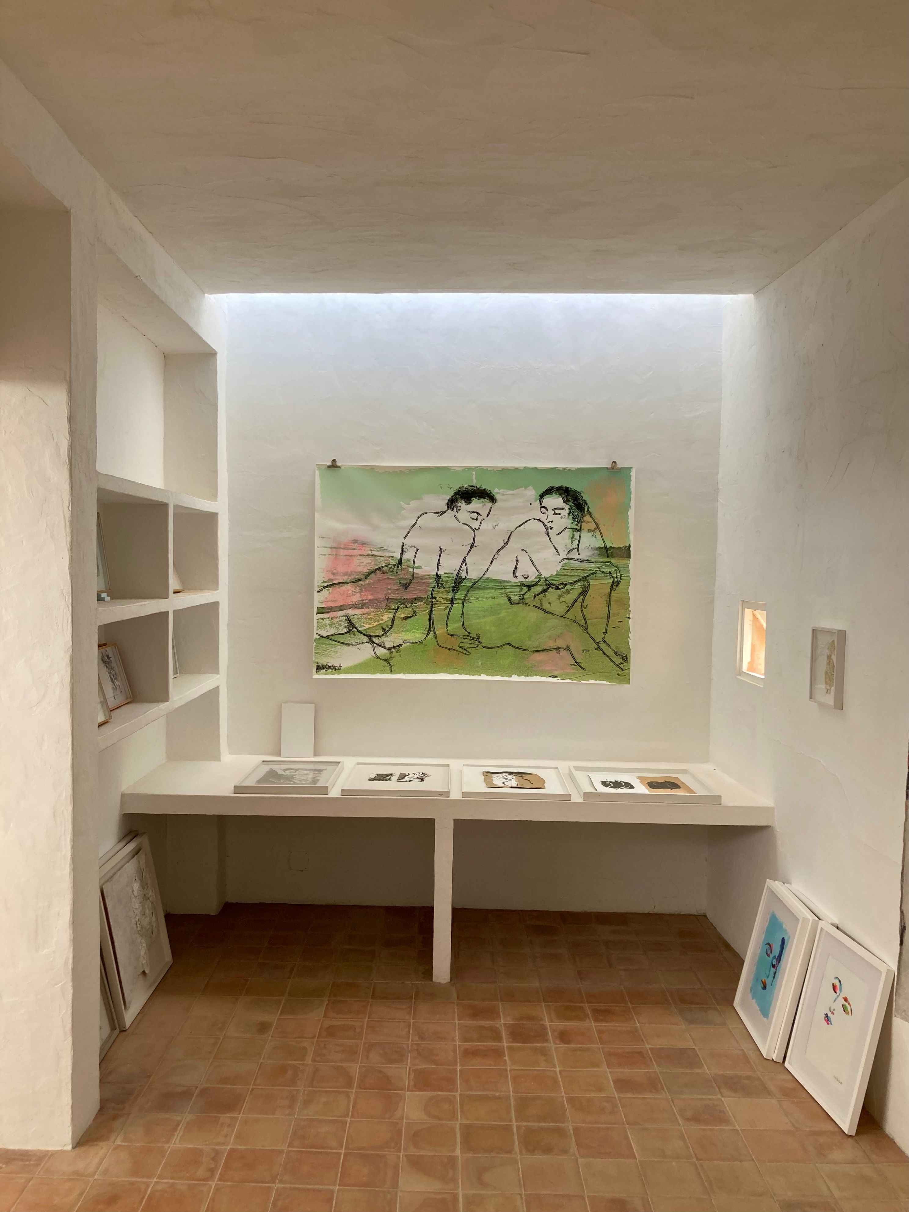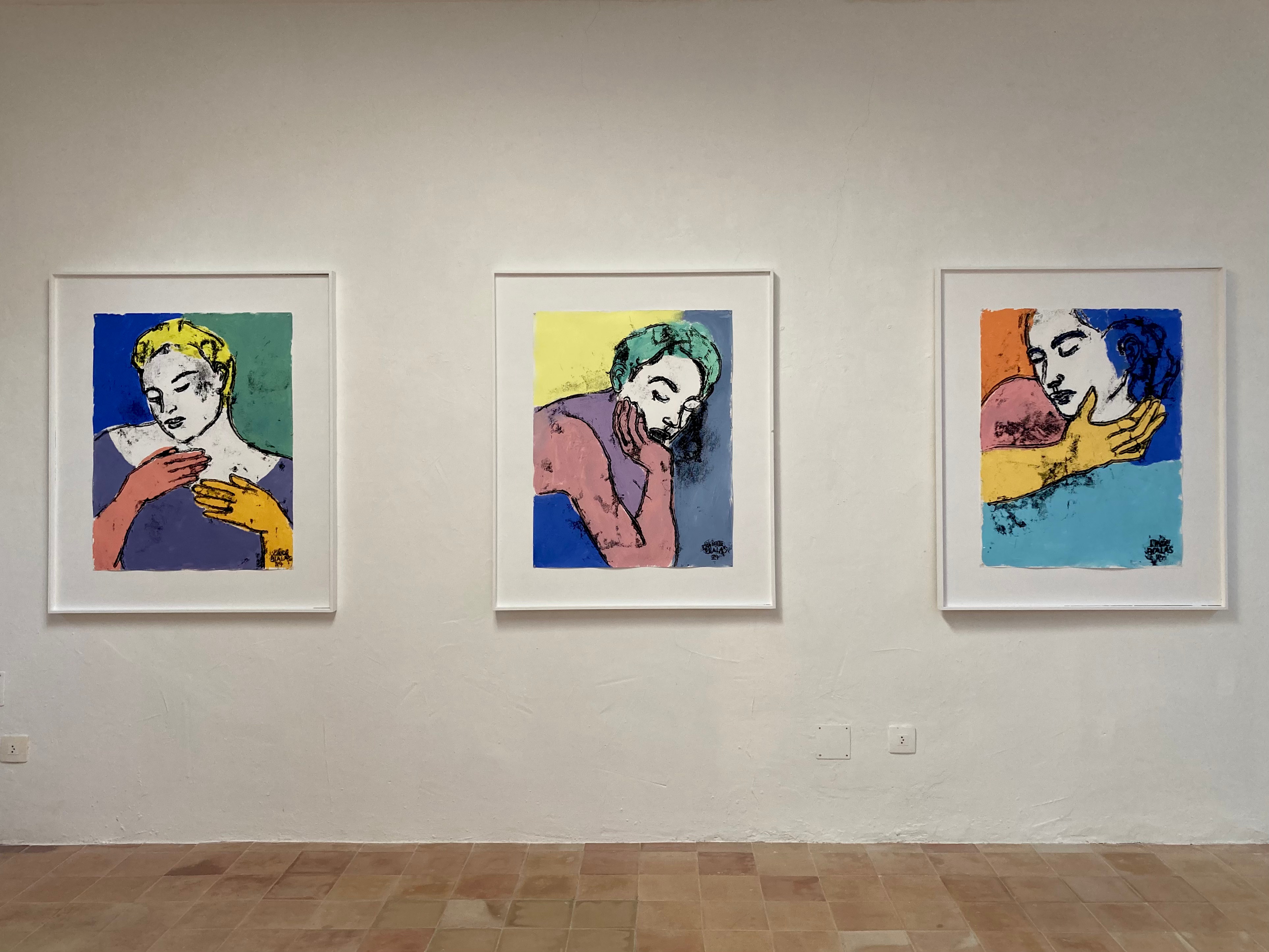 Her art embraces monotype, charcoal and acrylic painting, collage, and photography, always about the female figure. These women—often abundant, nude, and with eyes closed—are rendered in minimalist forms, sometimes with just a few black lines, embodying a universal femininity and radiating an inner strength. The result is a body of work that transforms women into timeless, iconic presences.