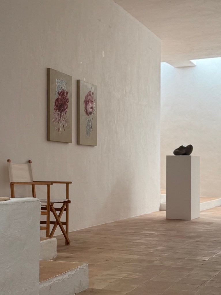 Working mainly with oil paint, oil pastel or charcoal, Vinyàrskaya balances expressive emotion with a clear, controlled technique, influenced by the landscape and quiet atmosphere of Formentera.